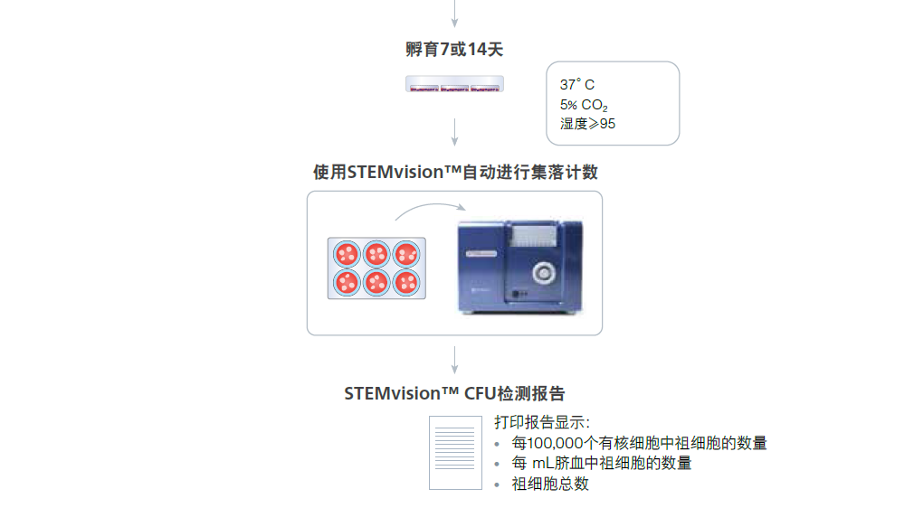 脐血库使用STEMvision™对造血集落进行自动化计数的CFU检测流程。