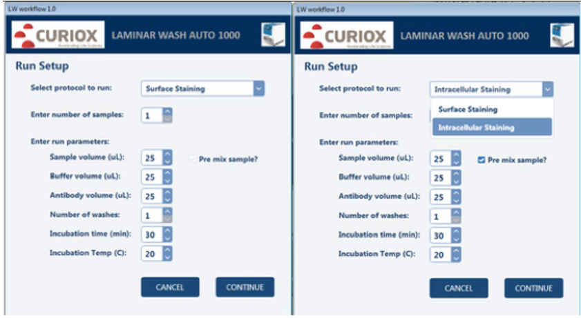 直接在层流洗涤AUTO 1000软件操作界面中改变。另外,预装好的实验方法可