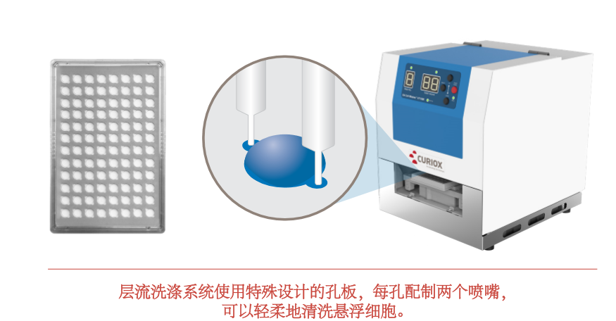 Curiox采用层流洗涤TM技术,轻松实现流式细胞术简易又经济的自动化。层流洗涤技术通过免离心洗涤,带来优越的一致性和稳健性高的流式数据。在待流式检测的悬浮细胞处理过程中,层流洗涤技术给科研工作者提供了优势。在流式细胞术分析前,免除离心操作可以显著地改善工作流程和时间管理。在使用离心方法的传统流式细胞术中,免疫细胞经历多次洗涤,这些洗涤会对细胞造成显著的伤害,继而增加了生物标记分子信号通路的改变和细胞损失。
